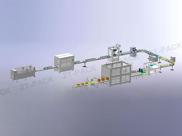 The 50-1000mL chemicals packaging machine for viscous liquid processes bottles less than 1,000ml in volume. With an automatic bottle unscrambler, filling machine, rotary capping machine, gluing/self-adhesive labeling machine, the chemical packaging line is a complete production line that packages and seals cartons. This fast and efficient bottle packaging machine processes detergents, hand soaps, and other high viscous liquid and applies anti-theft caps.